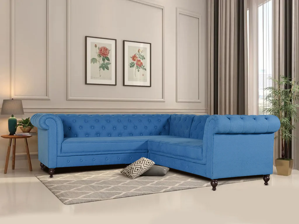 Get ready to lounge in style with the Berlin Sectional Sofa! This stunning piece in beautiful blue cotton fabric not only adds a pop of color to any room, but also provides comfort and durability. With the ability to easily customize and rearrange, it’s the perfect addition to any modern home.