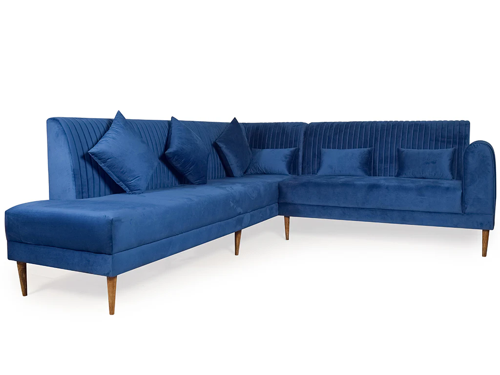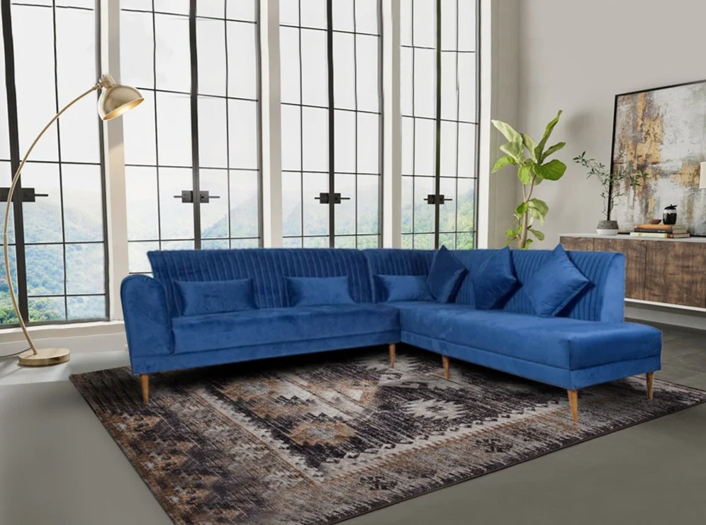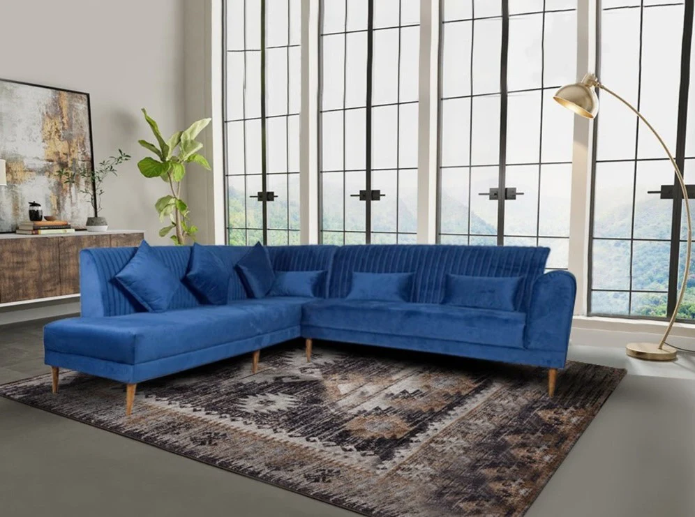 Evelyn Sectional Sofa in Blue Fabric