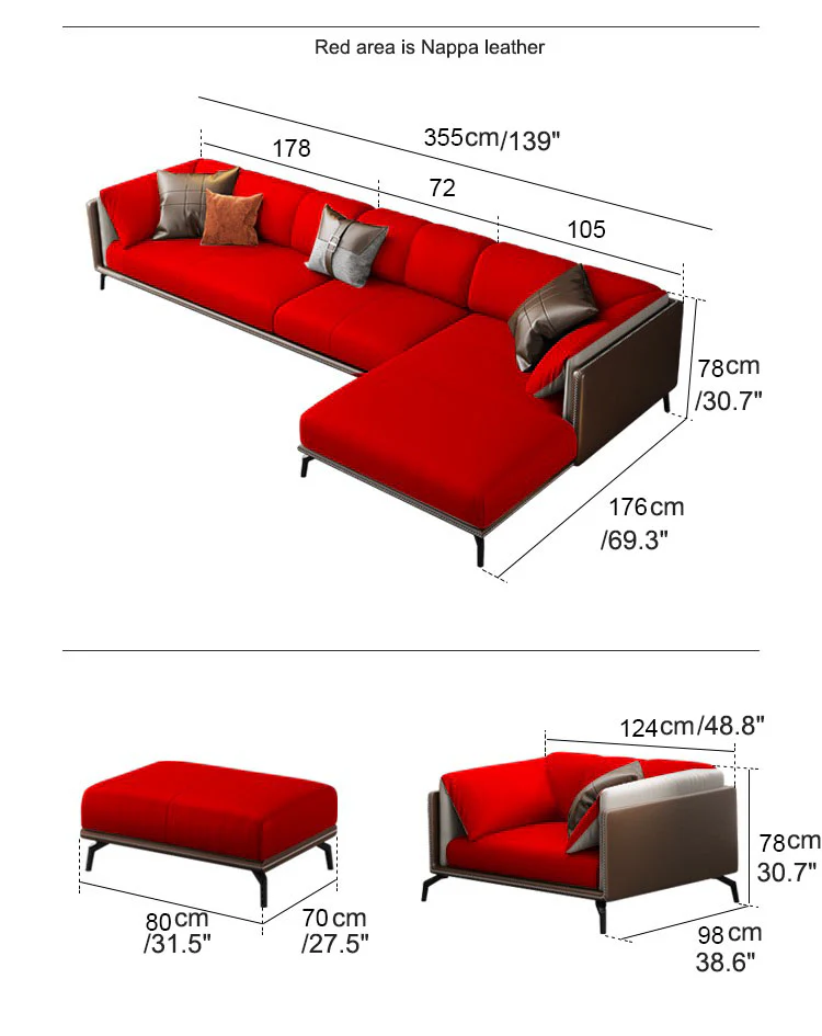 In today’s modern living rooms, furniture is typically arranged to create a comfortable and inviting space. This chaise sofa is made up of nappa leather leather upholstery, a thick wood frame, and a cushion filled with high-density foam. This sofa has a streamlined silhouette and is made with texture to give it a touch of personality. The flexible feather backrest will make your day a comfortable one. Bring this stylish addition to your home and make the evening more entertaining.